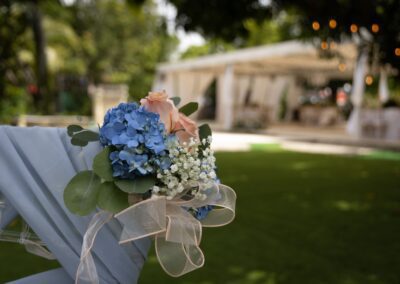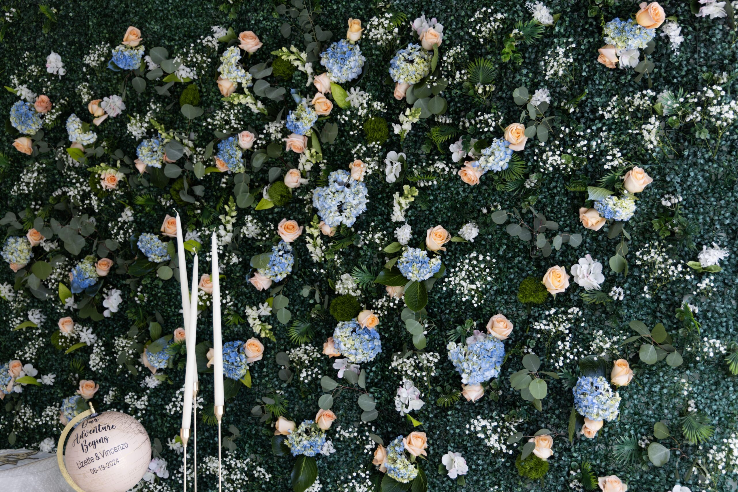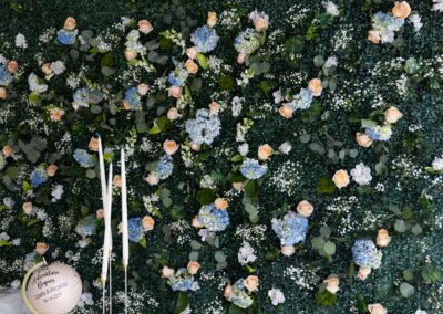 For the ceremony, floral arrangements can include a flower arch, hanging flower balls, flower vases, and flower arrangements on the chairs. For the banquet, arrangements can include table centerpieces, flower garlands, and flower arrangements on the bride and groom’s table. The bride’s bouquet is also an important element and can be customized according to her tastes and preferences.