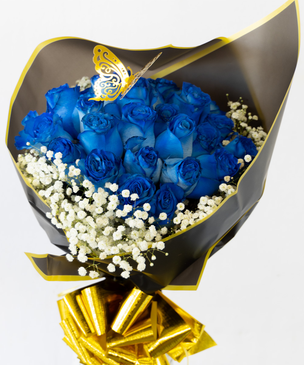 Adorned with lush greenery and delicate accents, this exquisite bouquet is a true testament to the beauty of nature. Each hand-selected rose, in a rich shade of blue, symbolizes tranquility and elegance, making it the perfect gift for any occasion. Whether celebrating love, friendship, or special milestones, these enchanting blooms evoke a sense of serenity and grace. Wrapped with care, this bouquet not only captures the eye but also touches the heart, leaving a lasting impression that resonates with the essence of joy and appreciation. Allow the charm of the Ramo Buchon to convey your feelings in a way that words alone cannot express.